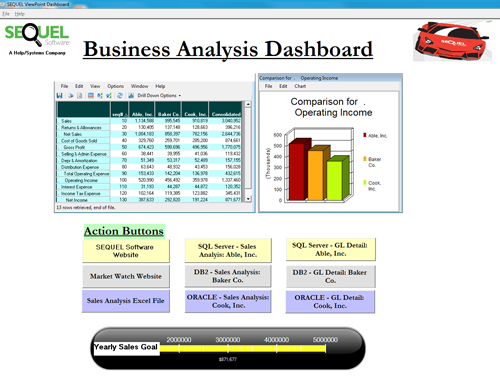 The consolidated data shown uses four SEQUEL Views and a SEQUEL Script. The Script runs automatically when the dashboard is opened or can be scheduled to run on a regular basis to collect the information from the databases and consolidate it on one server.