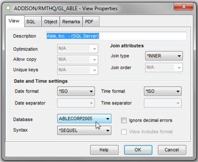 Tip: When building the SEQUEL View, select the remote database as needed and select *SEQUEL as the Syntax, allowing you to build the view in the SEQUEL syntax you are familiar with. At runtime, the SEQUEL syntax will be converted to native SQL or server-specific SQL on a remote database. Once you have your view defined using your remote database, you can build the view just like any other view that is built over the local IBM i data. Just select or drag and drop the tables (files), columns (fields), and so on to build the SEQUEL View.
