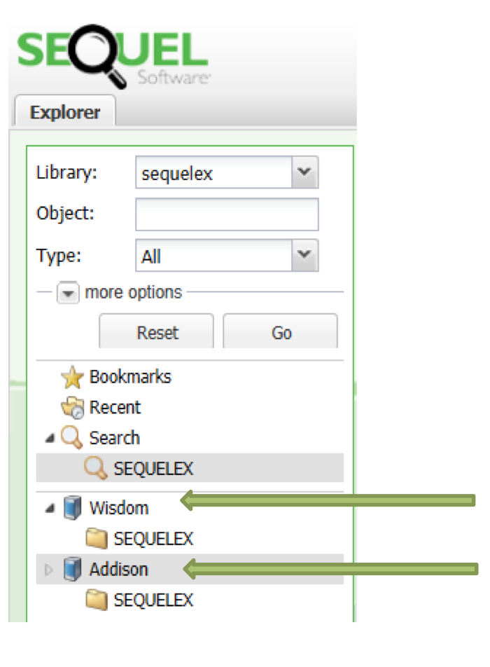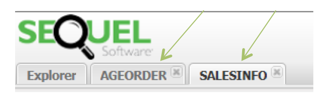 When Sequel objects are displayed, regardless of the host system they are being run from, new tabs will appear across the top to allow users to easily switch from one result set to another.
