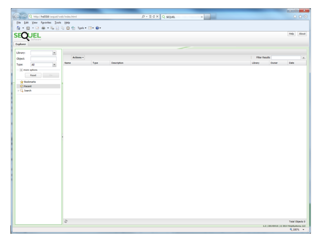 Once connected, you will have the same functionality as in Sequel Web Interface with the addition of the aforementioned multiple system Dashboards, interactive Client Tables, recent Sequel objects you have run, and the ability to view multiple iSeries in the navigation tree. You can even set bookmarks for easy access to frequently run reports.