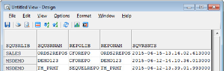 Also, a SEQUEL file called SQVRSNUS contains information or audits of what and when an object was versioned. This includes the view, report, and script, as well as the stream file on the IFS. You can use the SEQUEL Display command to see the contents of the file: