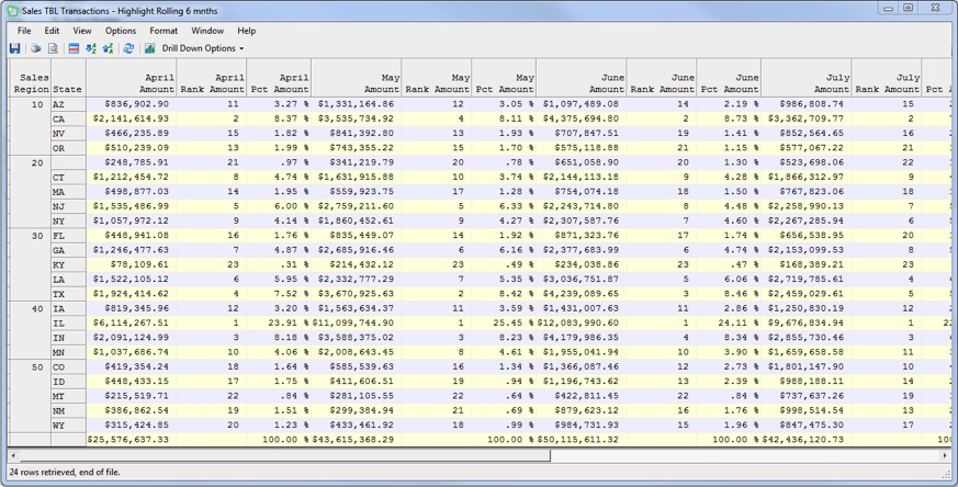 You can use Sequel host tabling to automatically summarize System i DB2 transaction data into spreadsheet-like files with summary rows, columns, and totals. You can enhance your table by adding rankings, percent of total, and other calculations.